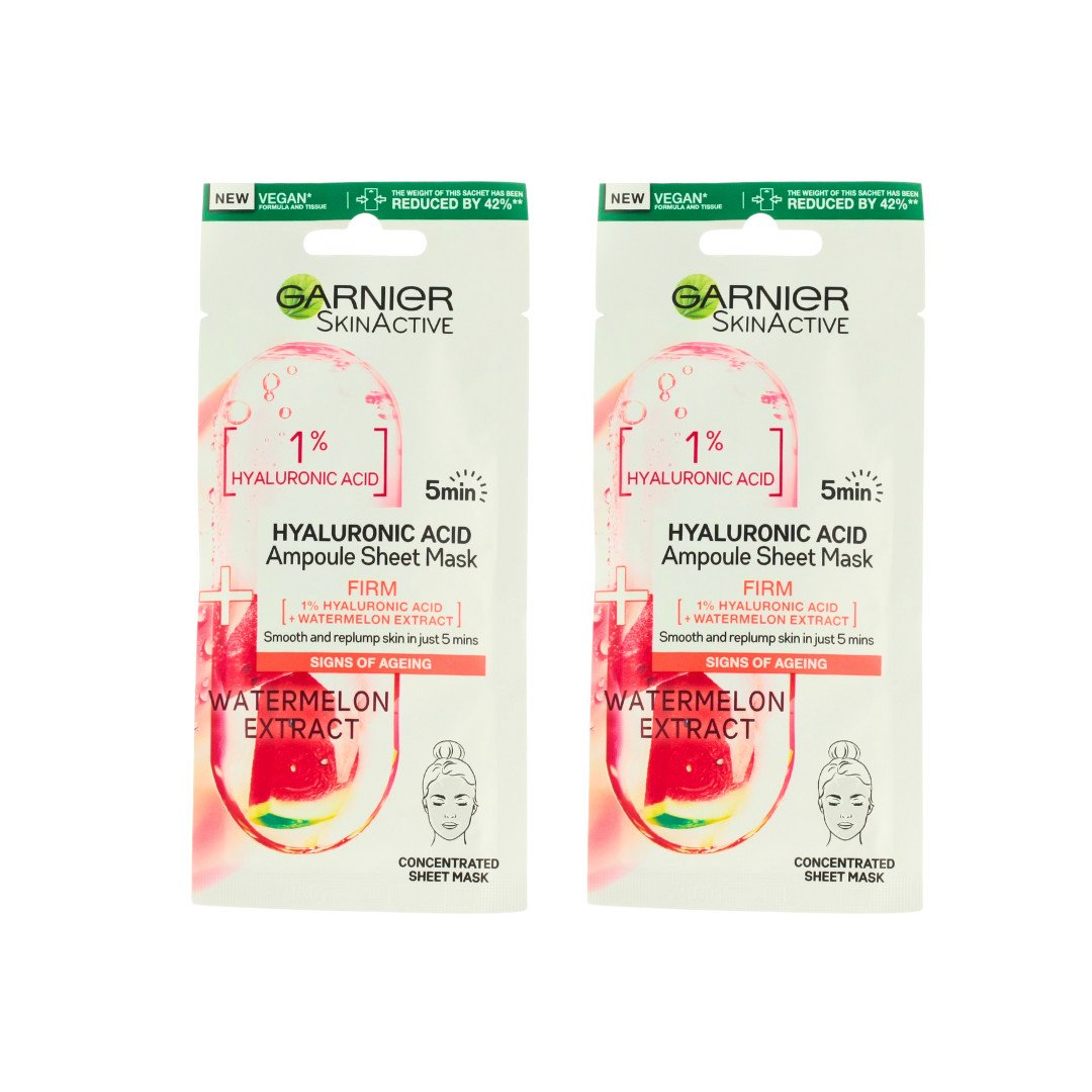 2 x Garnier Hyaluronic Acid+ Watermelon Firm Ampoule Sheet Mask - FREE SHIPPING