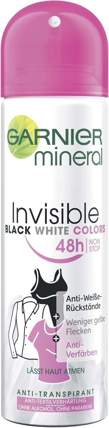 Garnier Mineral Invisible Black, White & Colours Deodorant Spray Pack of 6 x 15