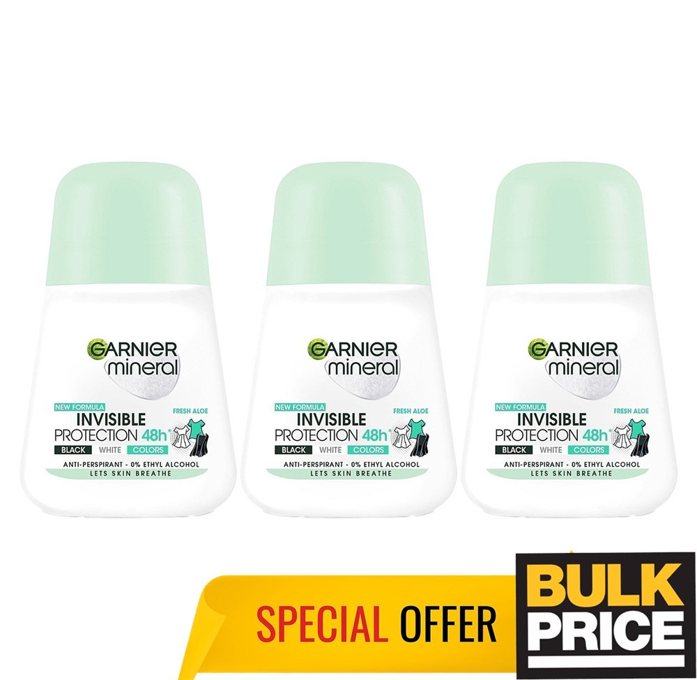 Garnier Mineral Invisible Colors Aloe Fresh Deodorant Roll-On 48H Protect 3-Pack
