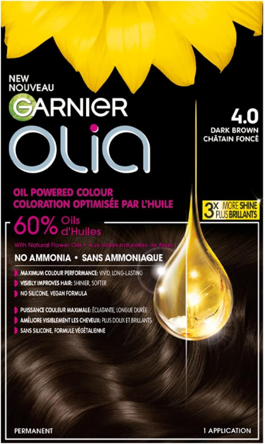 Garnier Olia 5.0 Brown Permanent Hair Dye, Up to 100% Grey Hair Coverage, Visibl