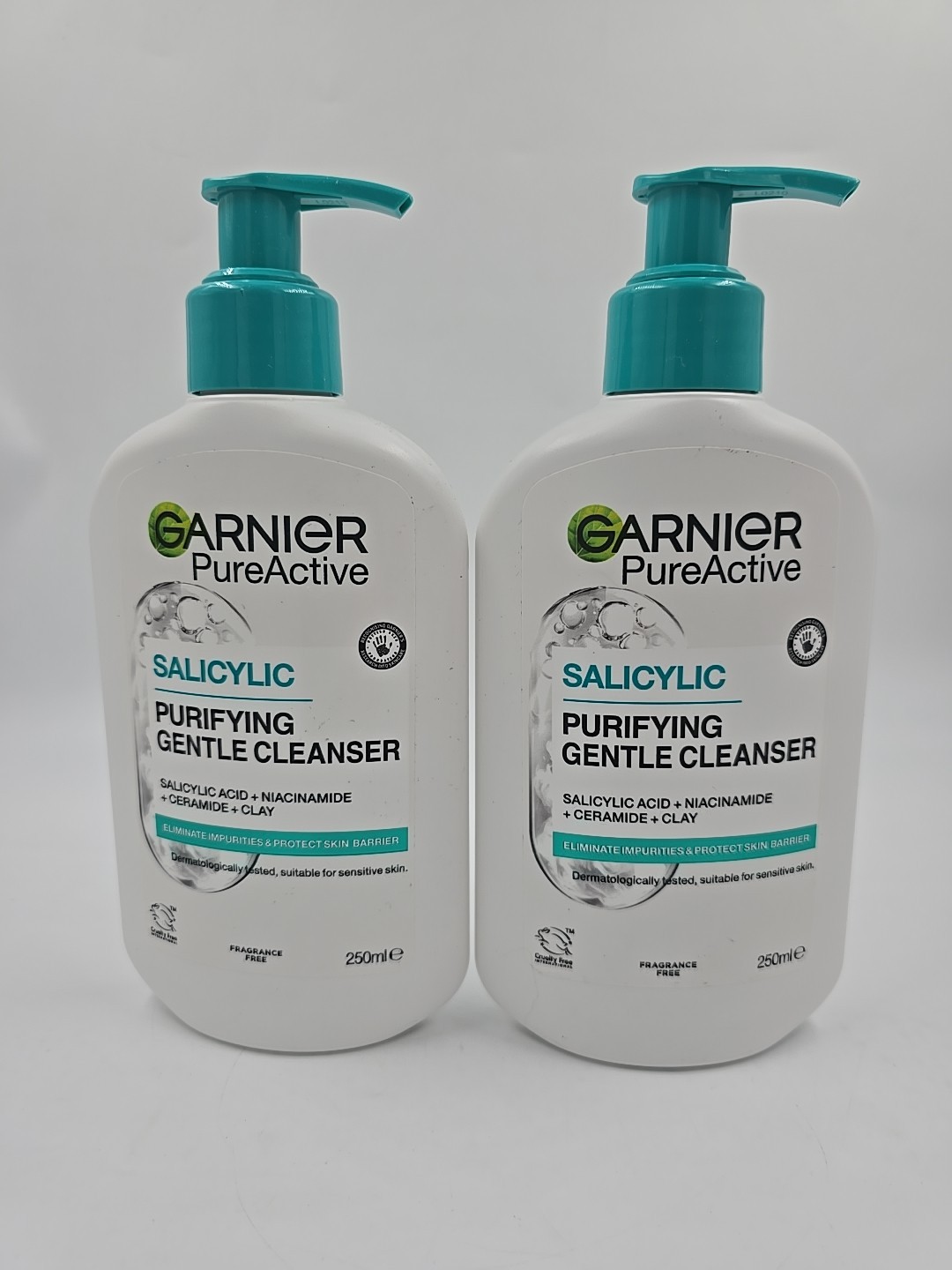 2 Pack Garnier Pure Active Salicylic Purifying Gentle Face Cleanser 2x250ml