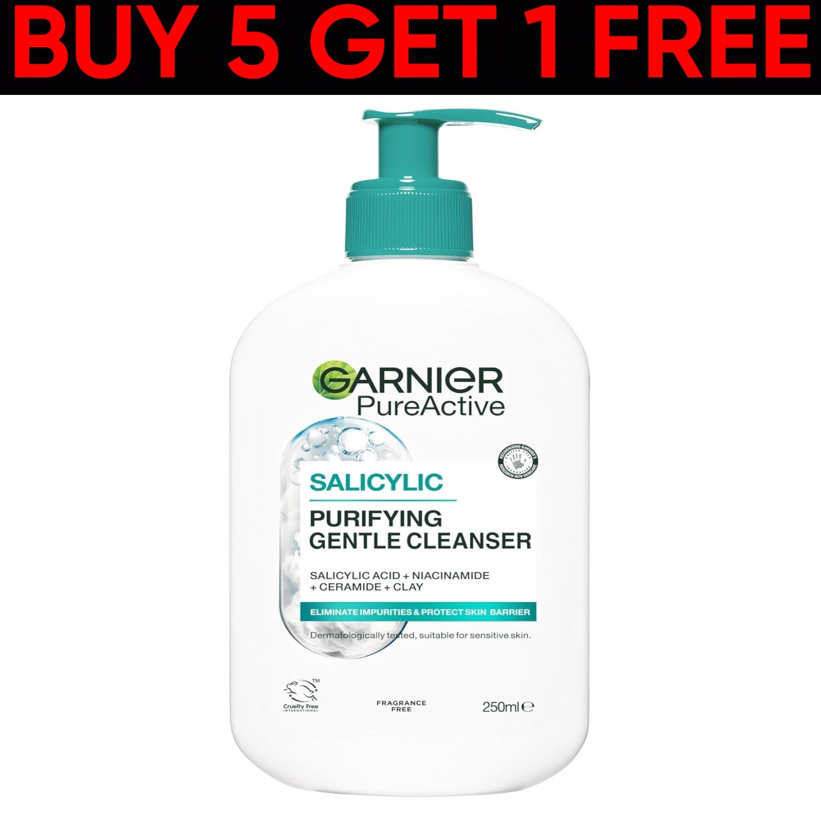 Garnier Pure Active Salicylic Purifying Gentle Face Cleanser, Enriched With Salicylic Acid, Niacinamide, Ceramides & Clay, Fragrance Free, Sulphate Free Formula, Suitable For Sensitive Skin, 250ml