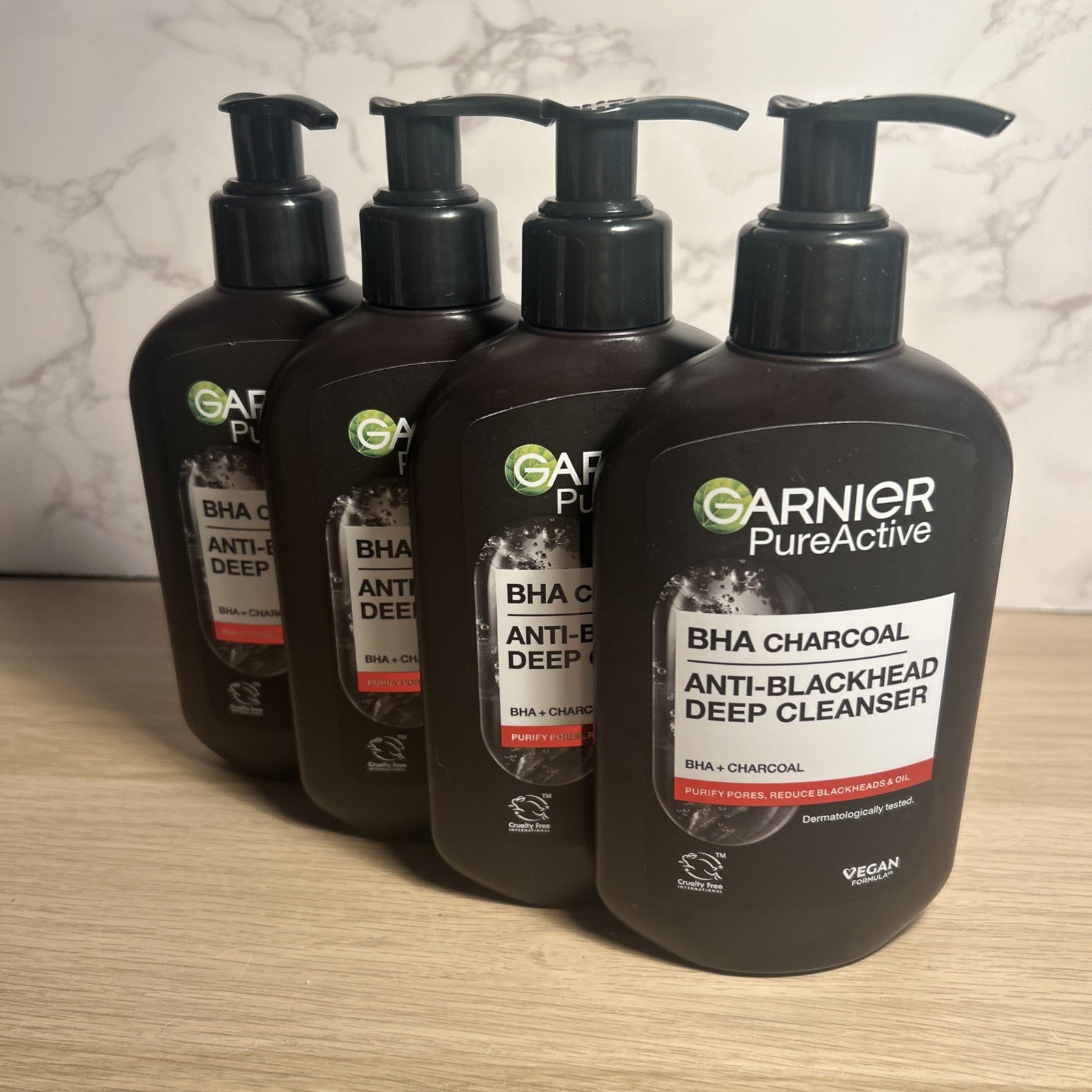 x4 GARNIER PURE ACTIVE PURIFYING CLEANSER GEL ANTI-BLACKHEAD CHARCOAL 250ML