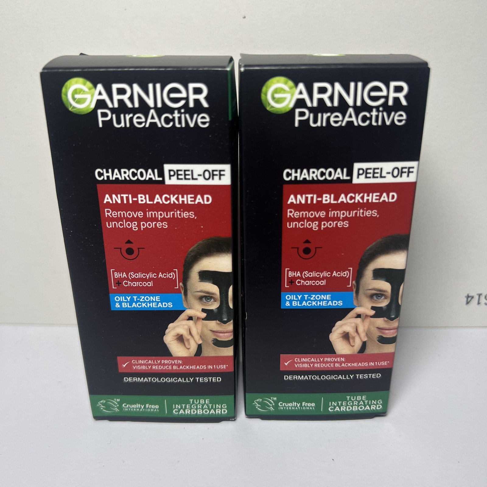 2 X Garnier Pure Active Charcoal Anti Blackhead Peel off Mask 50ml