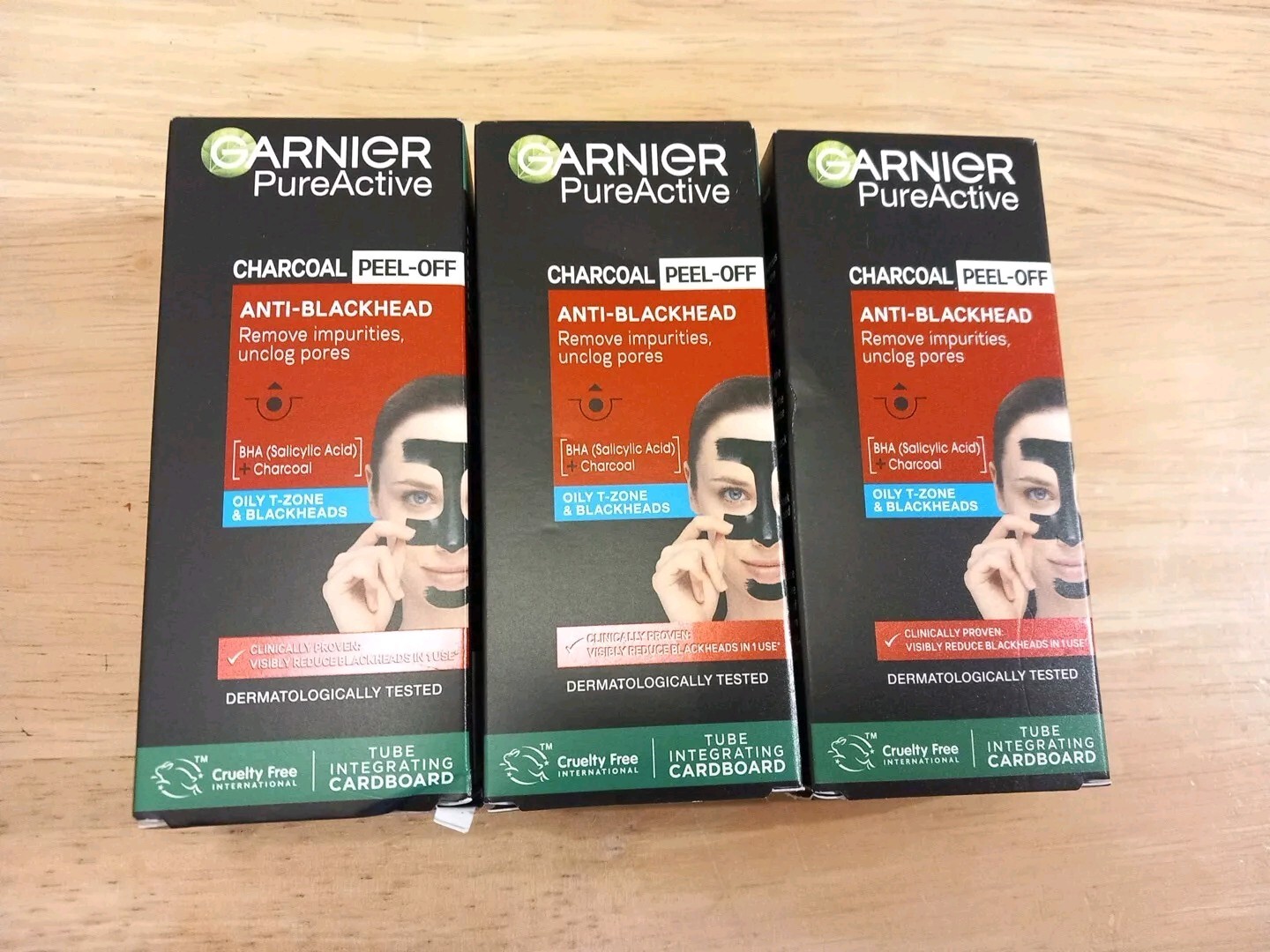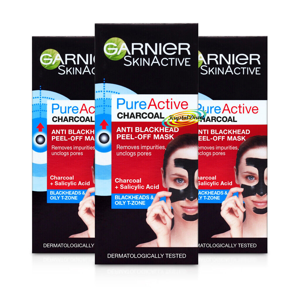 3x Garnier Pure Active Charcoal Anti Blackhead Peel off Mask 50ml