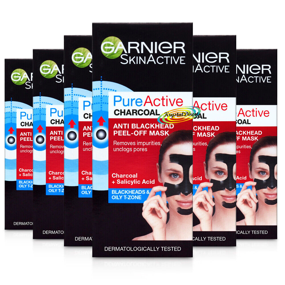 6x Garnier Pure Active Charcoal Anti Blackhead Peel off Mask 50ml
