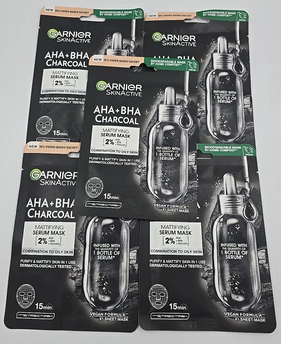 5 X Garnier Pure Charcoal and Algae Sheet Mask, Purifying