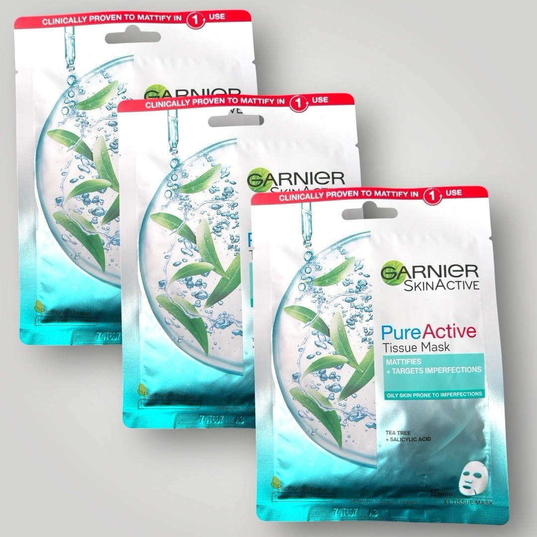 3 x Garnier Skin Active Pure Active Tissue Mask Tea Tree + Salicylic Acid