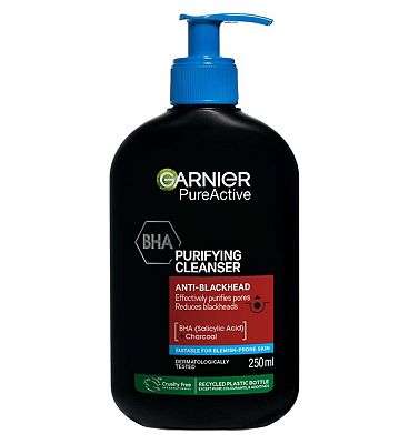 Garnier Pure Active Anti-Blackhead BHA Charcoal Daily Face Cleanser 250ml