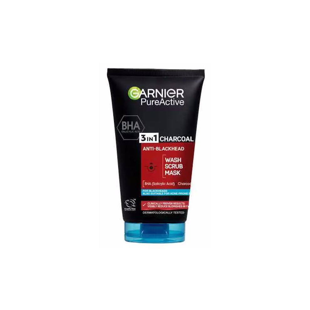 Garnier Pure Active 3in1 Charcoal Anti-Blackhead Mask Wash Scrub, for Oily Spot Prone Skin, Enriched with Salicylic Acid to Purify, Unclog Pores