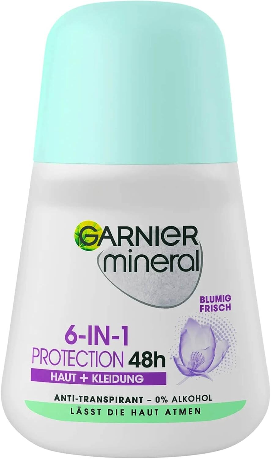 (6 x Protection Floral Fresh ) 6 x 50ml Garnier Mineral Women Roll On Anti Perspirant Deodorant (6 Types)