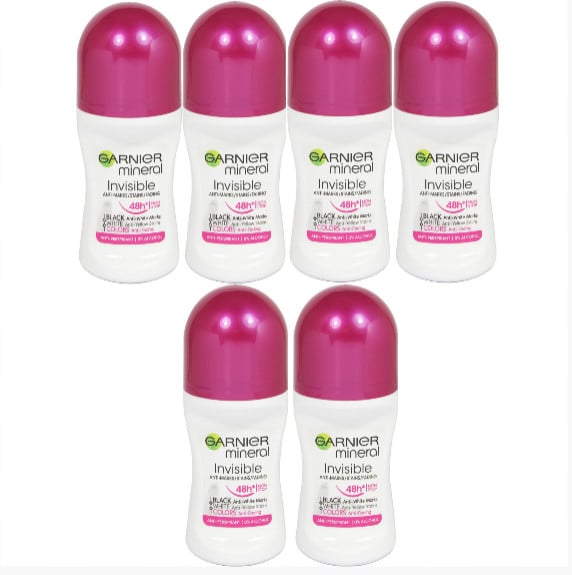 (6 x Invisible ) 6 x 50ml Garnier Mineral Women Roll On Anti Perspirant Deodorant (6 Types)