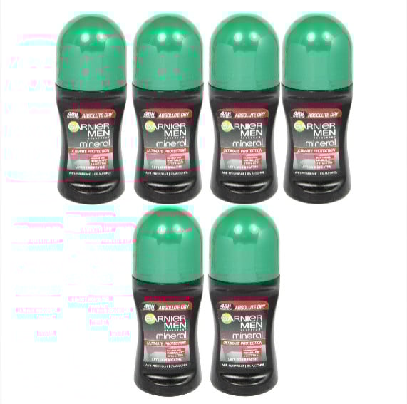 (6 x Absolute Dry) 6 x 50ml Garnier Men Mineral Antiperspirant Roll On 48h Deodorant (6 Types)