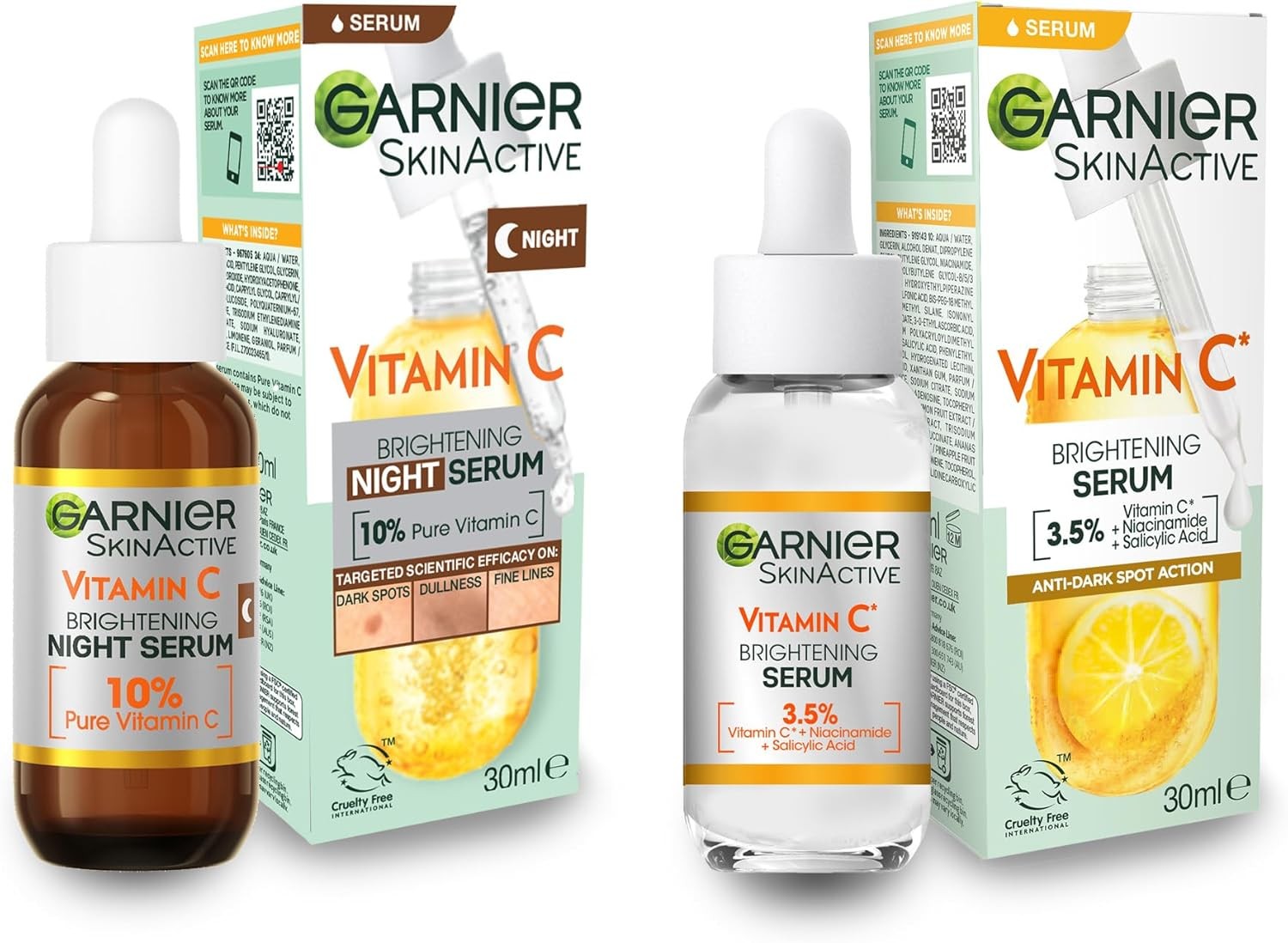 Garnier Vitamin C Day & Night Serum Gift Set for Face, Anti-Dark Spots & Brightening, For All Skin Types, Approved by Cruelty Free International (Pack of 2)