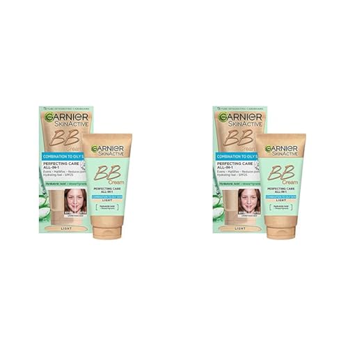Garnier Oil-Free Perfecting All-in-1 BB Cream, Shade Light, Tinted Moisturiser SPF25, Mattifies Skin & Evens Complexion, With Hyaluronic Acid, Aloe & Mineral Pigments, 50ml (Pack of 2)