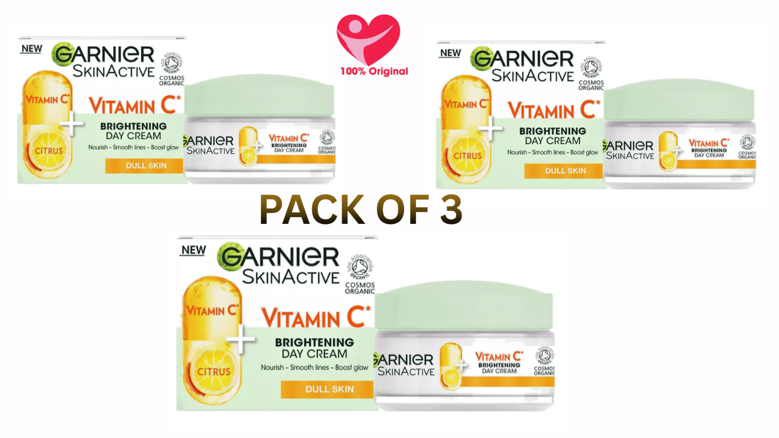 GARNIER Skin Active Vitamin C Brightening Day Cream Nourish Dull Skin | 3 X 50ml