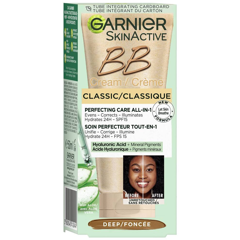 Garnier SkinActive Classic Perfecting All-in-1 BB Cream, Shade Classic Deep, Tinted Moisturiser SPF 15, Brightens and Evens Skin, With Hyaluronic Aci