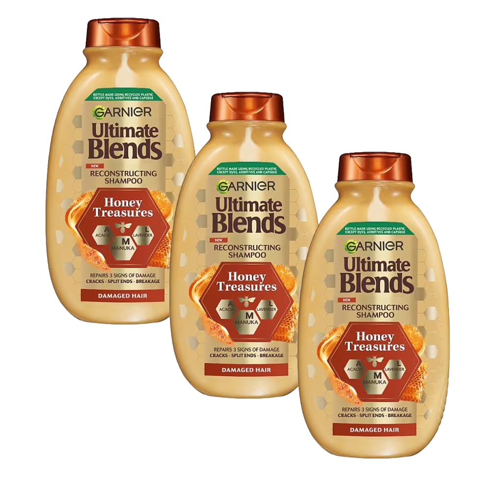 3x Garnier Ultimate Blends Honey Treasures Reconstructing Shampoo 400ml
