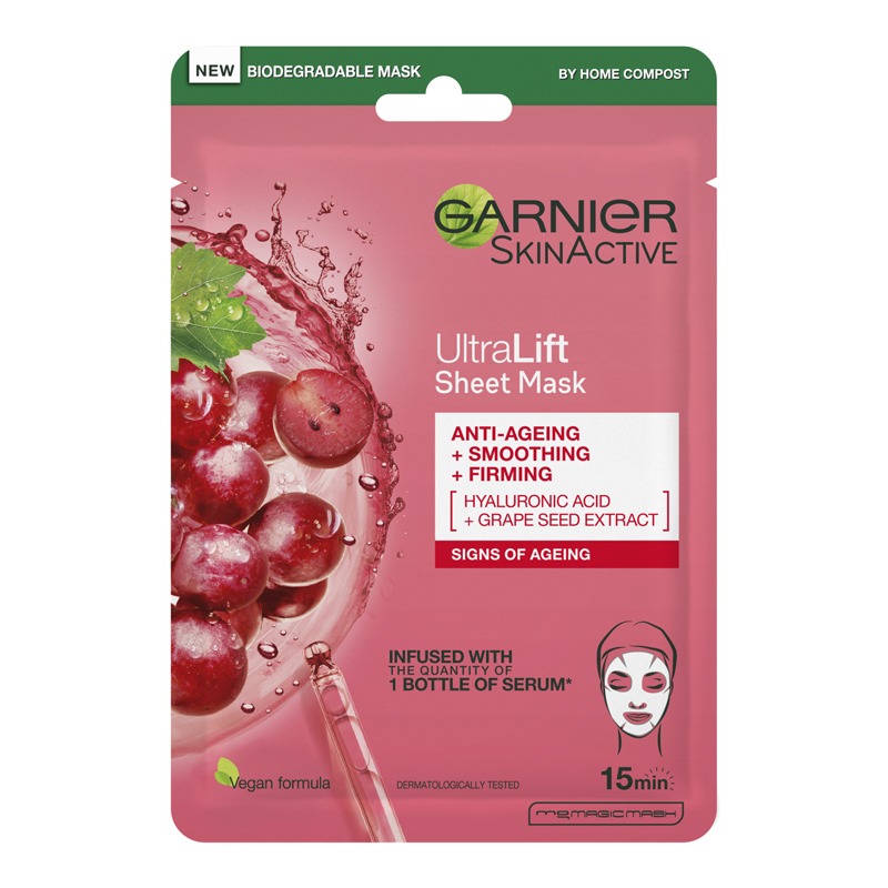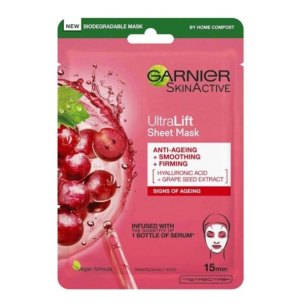 6 x Garnier Skin Active Ultra Lift Mask Grape Seed Extract + Hyaluronic Acid