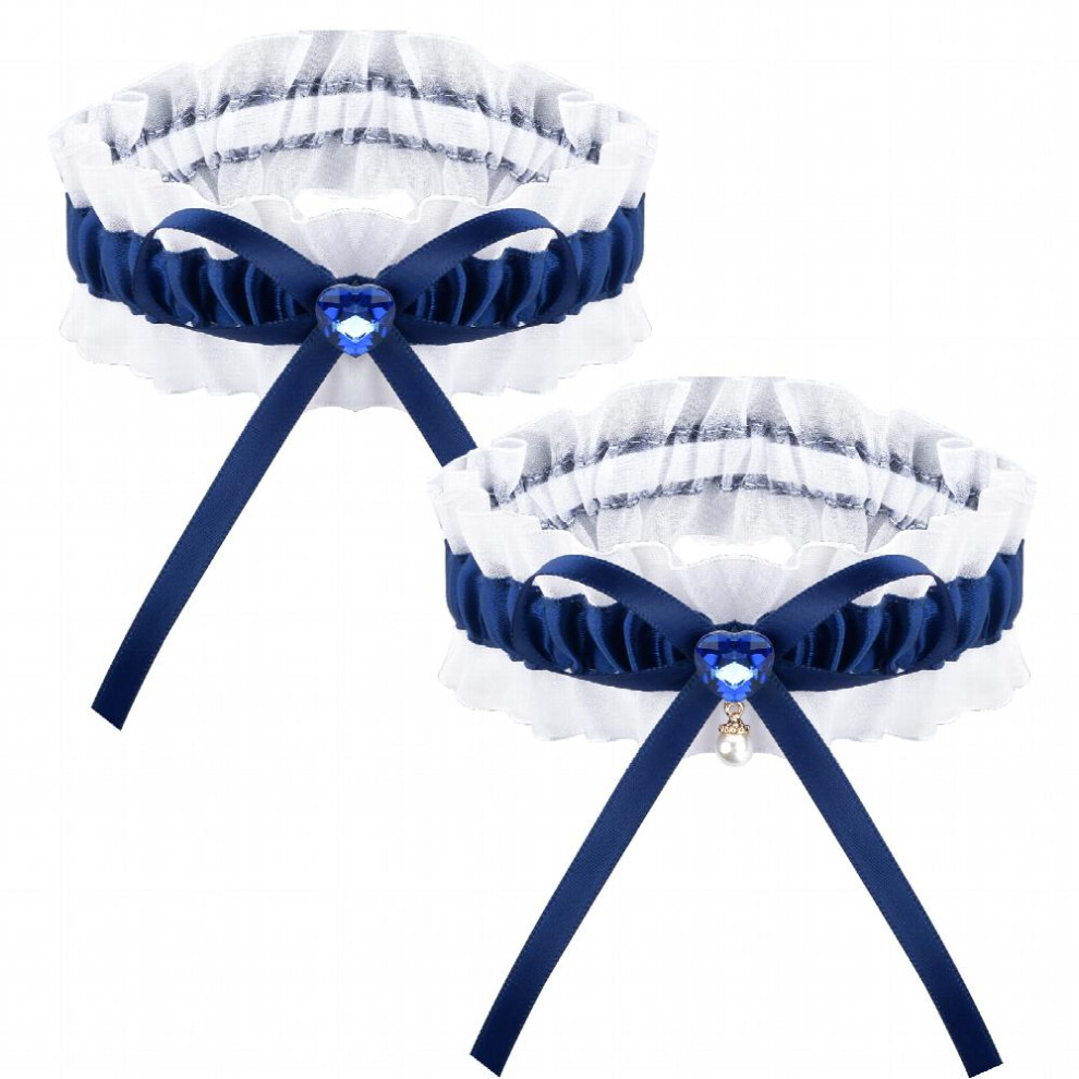 (Navy Blue) 2pcs Wedding Garter For Bride Prom Lace Garters Bridal Leg Stretchy Garter Set
