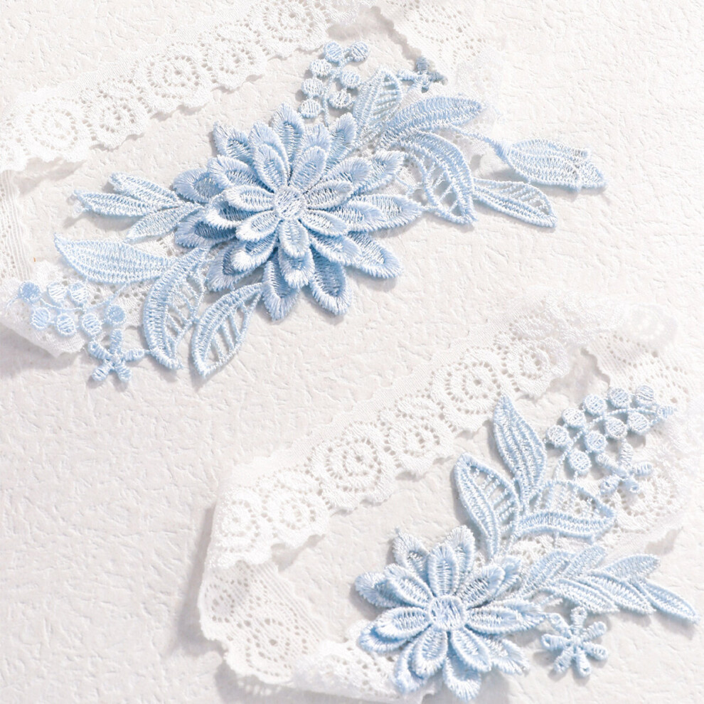Ycfish 2PCS Wedding Garter Accessories Lace Bridal Garter Sets Bridal Floral Lace Elastic Foot Decor Light Blue