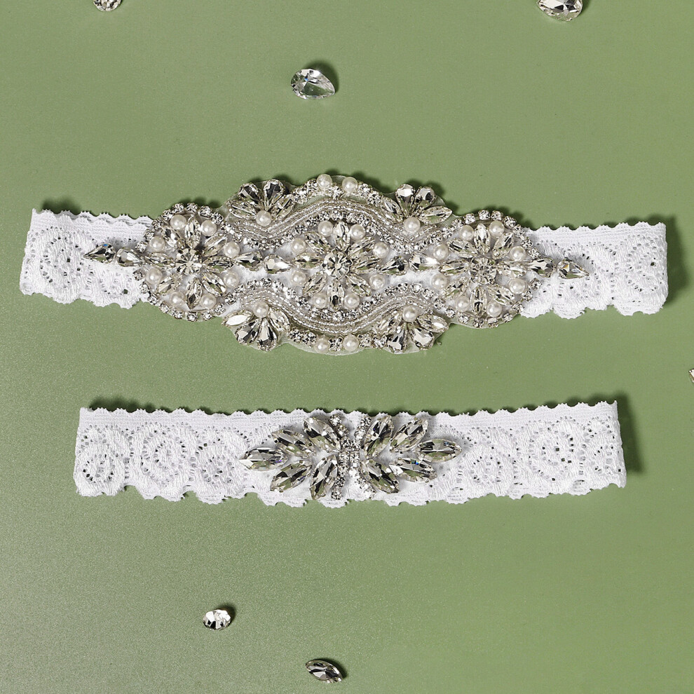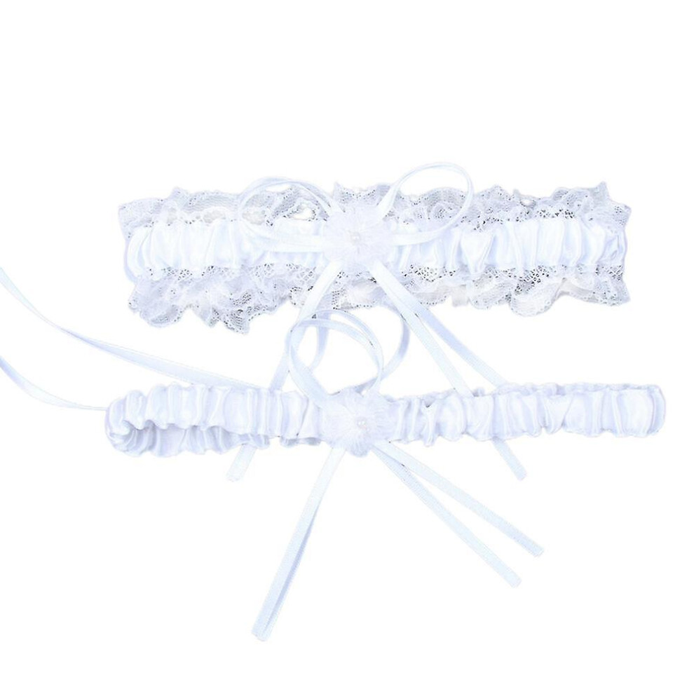 (White) 2pcs Wedding Garter For Bride Prom Lace Garters Bridal Leg Stretchy Garter Set