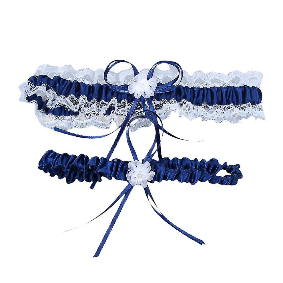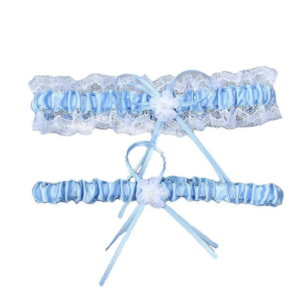 (Blue) 2pcs Wedding Garter For Bride Prom Lace Garters Bridal Leg Stretchy Garter Set