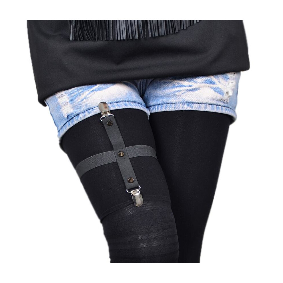(Black) Sexy Gothic Suspenders Pu Leather Bridal Garter Belt Stockings Leg Ring Thigh Wedding Garter Elastic Suspender Belt