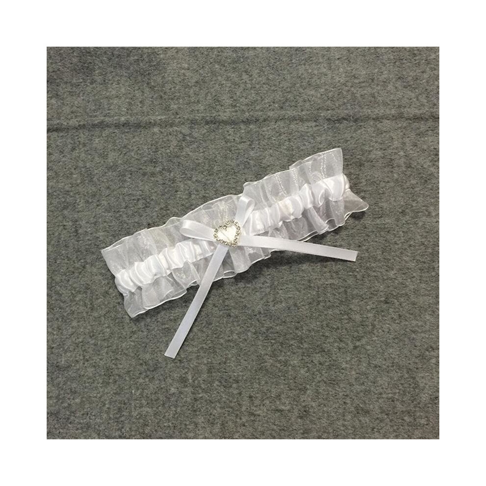 Wedding Garter Accessories Ribbon with Bow, Flower Lace,Rhinestone,White Bridal Stocking Flower Ornament