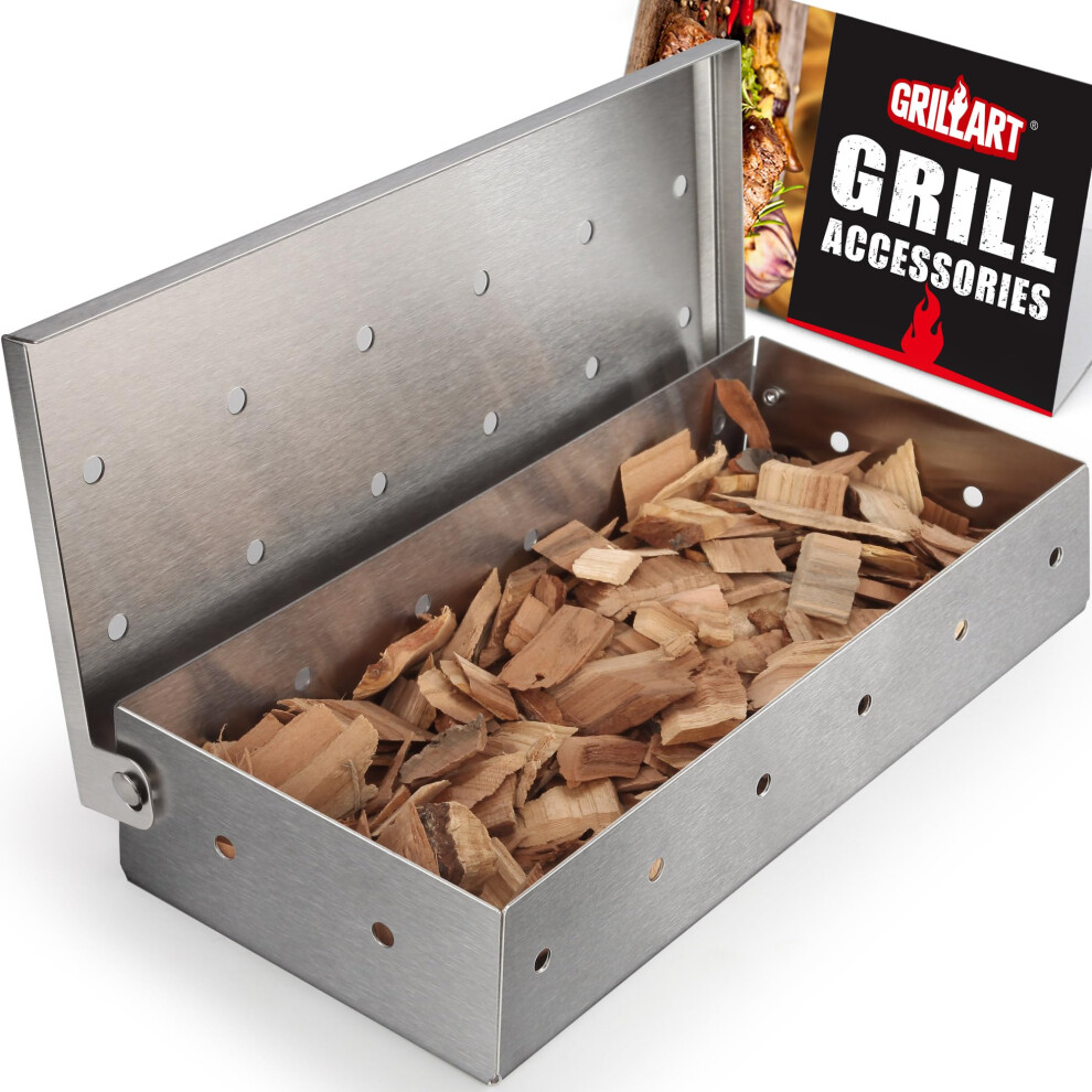 Grill Smoker Box Stainless Steel Heavy Duty Hinged Lid for Gas and Charcoal BBQ Rich Smoky Flavor