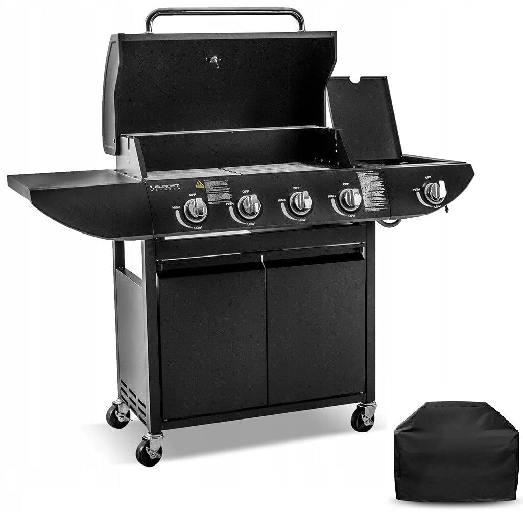 AJJHUUKI Gas Barbecue Grill 4+1 Cooking Zone Black Steel