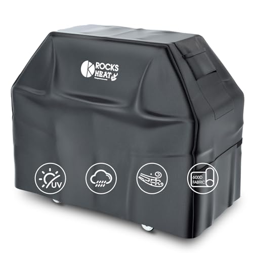 Rocksheat BBQ Cover, Heavy Duty Grill Cover for Outdoor Grill, Waterproof, Weather Resistant & Fade Resistant Gas Barbecue Cover for Weber Charbroil Nexgrill Dyna-Glo Brinkmann (147L x 61W x 117H cm)