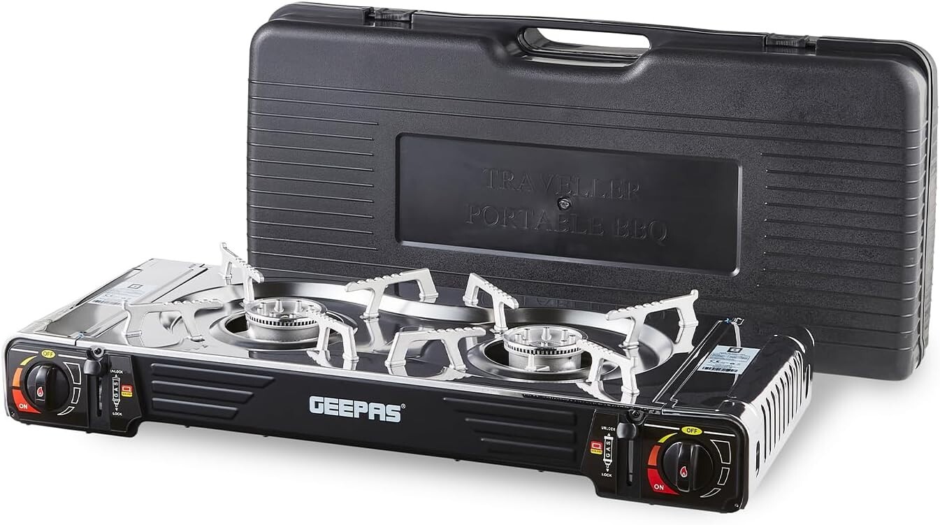 Portable Camping Double Burner Gas Stove Butane Gas Bottle Canister Outdoor BBQ