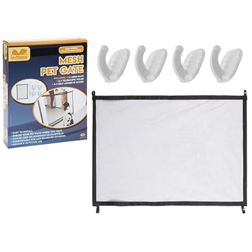 PMS 879041 Portable Mesh Pet Gate: Ideal for Household Use, White, 7 Pieces, Mesh Magic Pet Dog Gate for Doorways, Stairs, Hallways, Indoors/Outdoors,Perfect for Pets