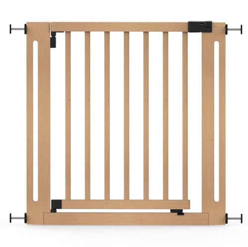 Safetots Wooden Elegance Safety Gate, Natural, 71cm - 79cm, Pressure Fit, Baby Gate for Stairs, Hallways and Doors, Stylish Design and Easy Installation