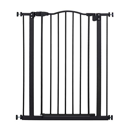 PawHut Pressure Fit Dog Stair Gate No Drilling Safety Gate Auto Close for Doorways, Hallways, 74-80cm Adjustable, 94cm Tall, Black