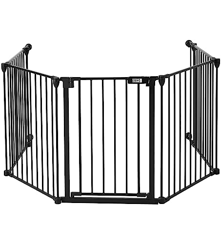 The Fellie Metal Safety Gate, Stair Gate for Dogs & Doorways, 5-Panel Foldable Dog Gate with Automatic Closing, Playpen Safety Barrier Room Divider for Pets/Child/Tree,74cm Tall, Black