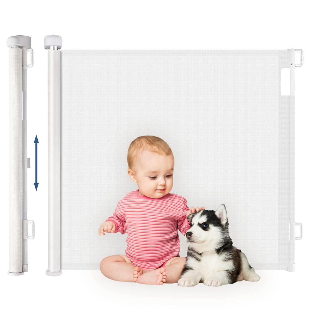 Retractable Baby Gate Safety Mesh Pet Gate Easy Roll Latch for Stairway Doorway