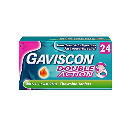 Gaviscon Double Action Tablets, Mint Flavour, 48 Tablets, Indigestion and Heartburn Relief, Indigestion Tablets, Acid Reflux, Antacid, Gets to Work Instantly, Lasts 2X Longer, Antacids