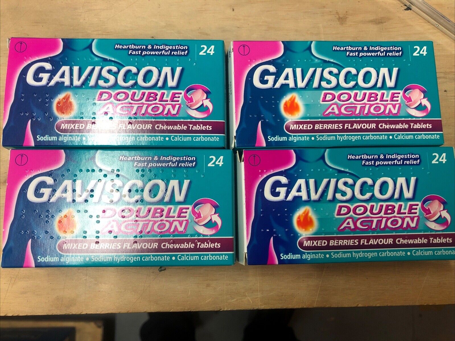 4 X Gaviscon Double Action Heartburn & Indigestion Mixed Berries Flavour 24 Tab