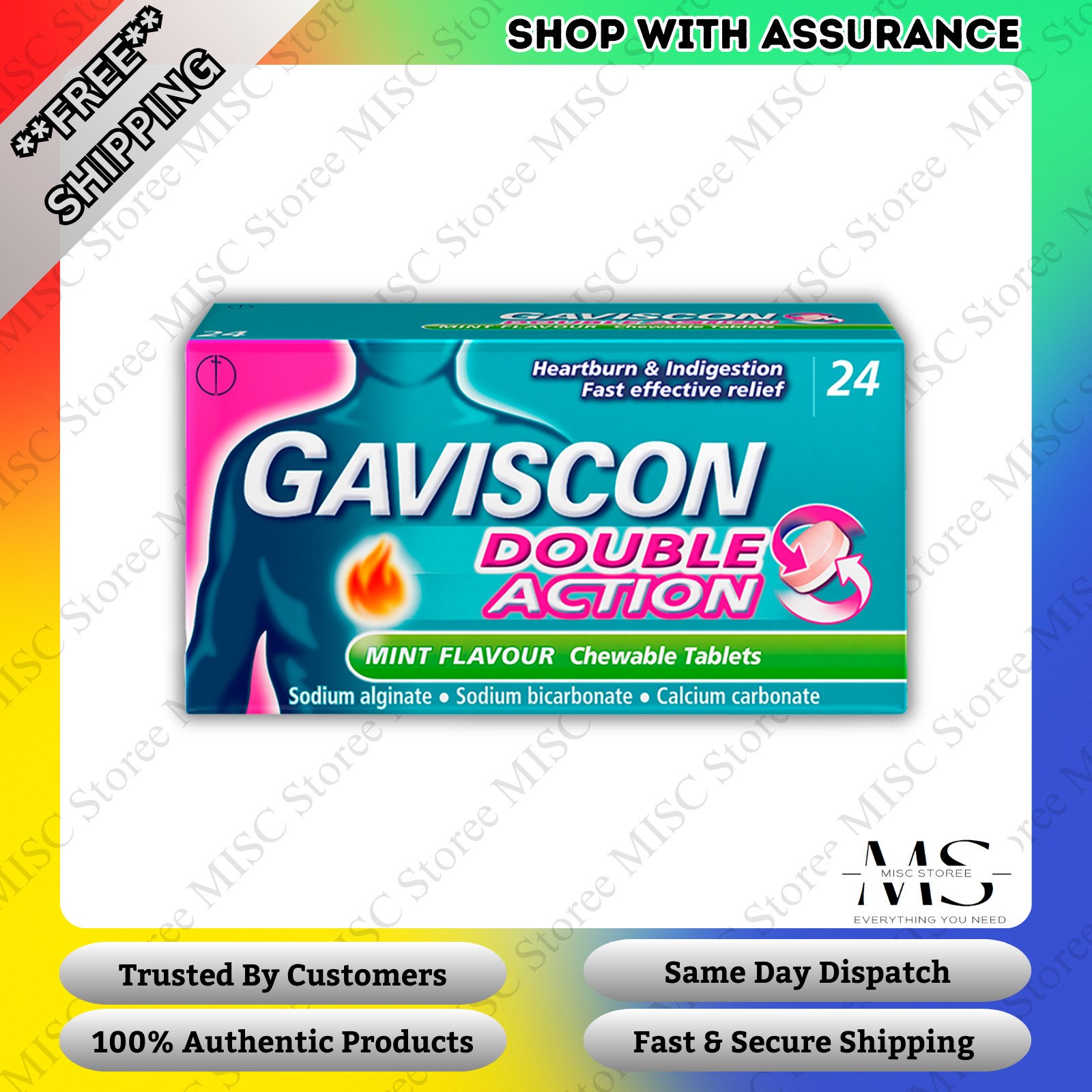 2x Gaviscon Double Action Mint Tablets – 48 Tablets - ORIGINAL