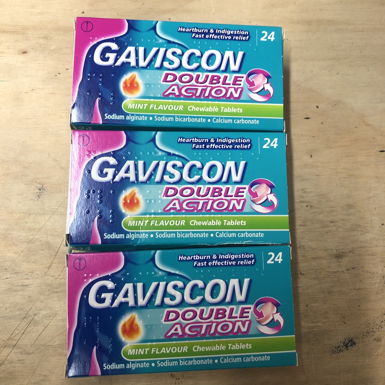 3 x 24 Gaviscon Double Action Mint Flavour Chewable Total 72 Tablets Exp:-Jul 27
