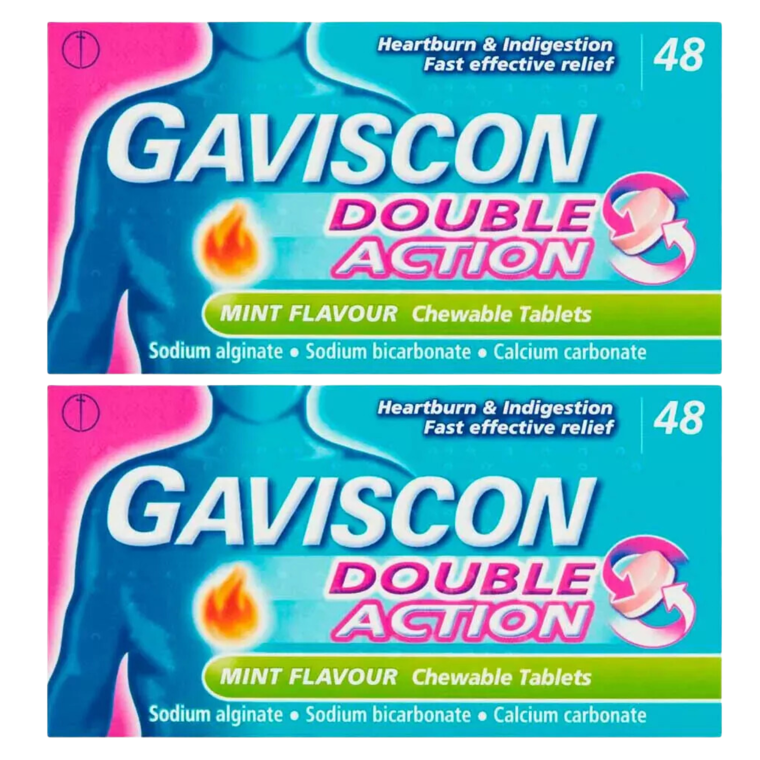 2x - Gaviscon Double Action Mint Flavour 48's - Total 96 Tablets 100% ORIGINAL
