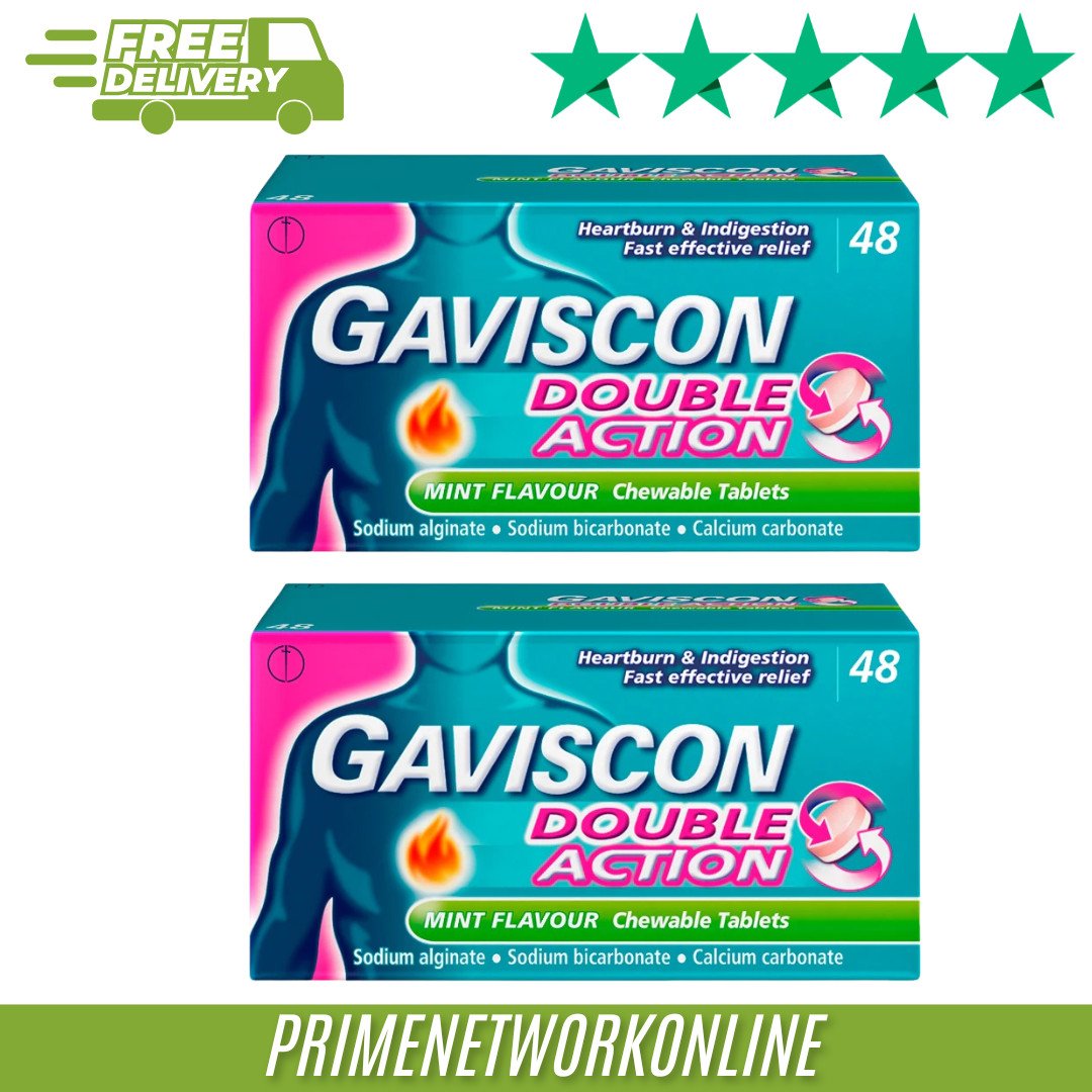 2 X Gaviscon Double Action Mint Flavour 48's - Total 96 Tablets 100% NEW ⭐⭐⭐⭐⭐