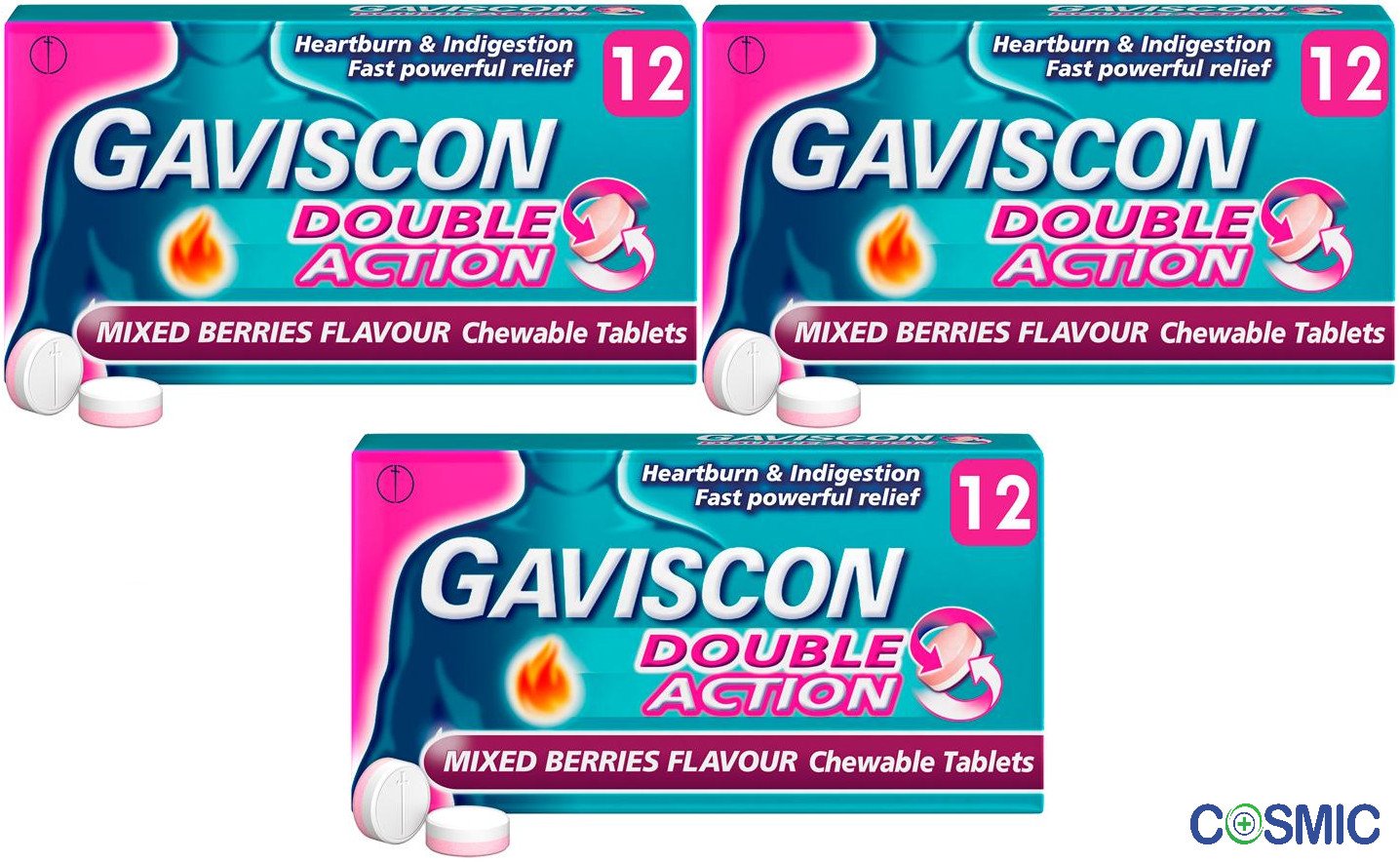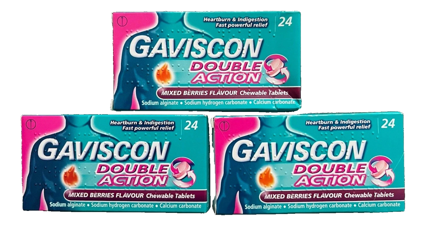 3 X Gaviscon Double Action Mixed Berry – 24 Tablets Each 100% ORIGINAL ⭐⭐⭐⭐⭐