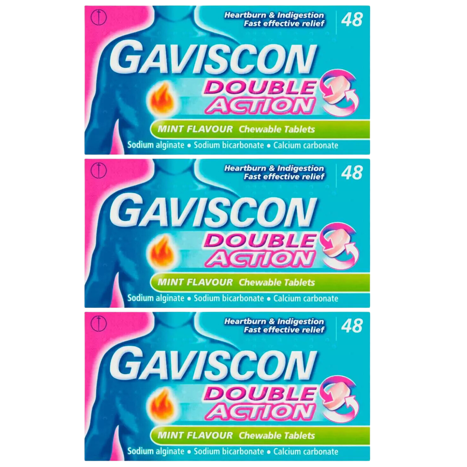 Gaviscon Double Action Mint chewable 48 tablet - Pack of 3