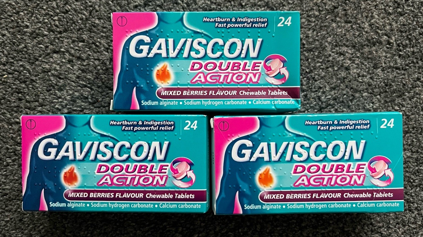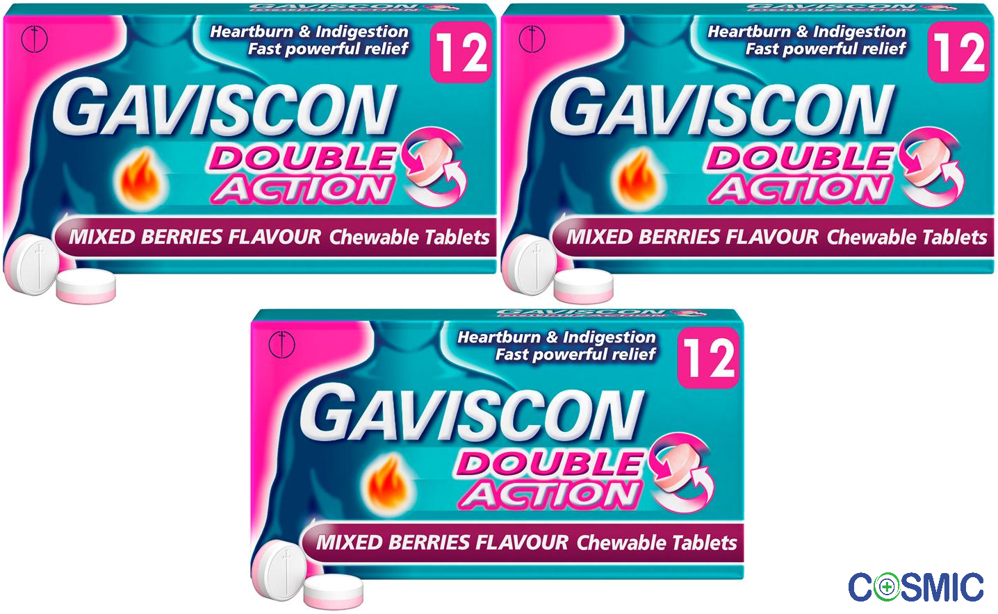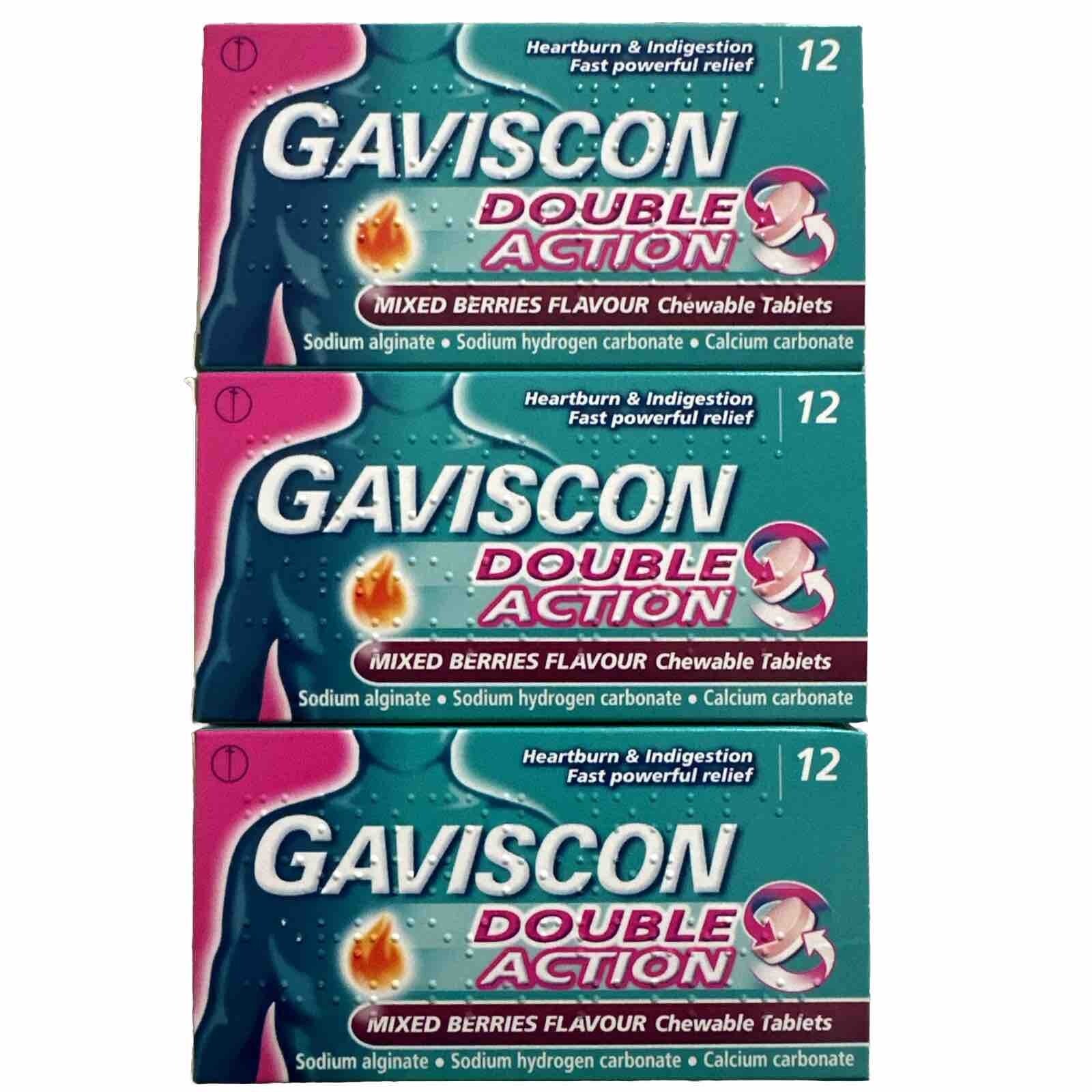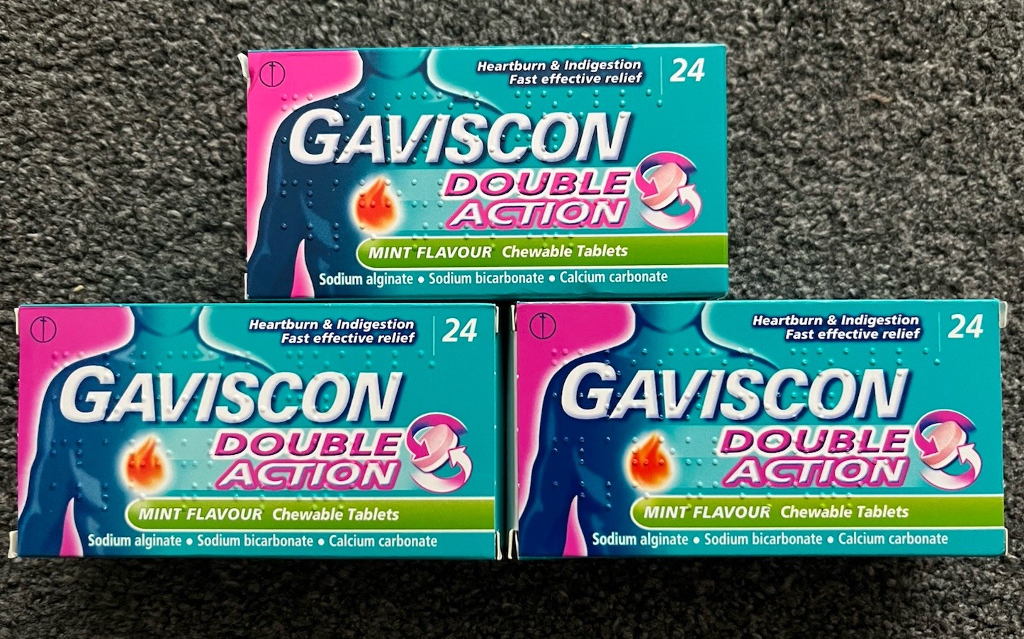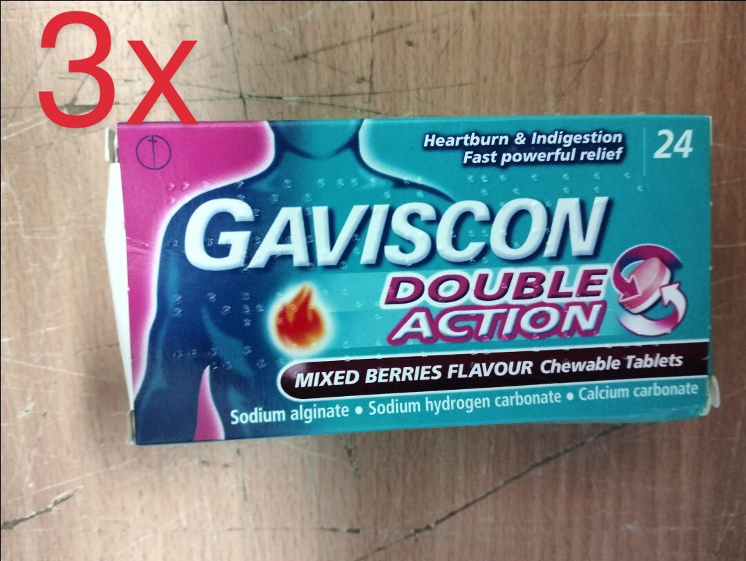 3 X Gaviscon Double Action Mixed Berry – 24 Tablets Each 100% ORIGINAL ⭐⭐⭐⭐⭐