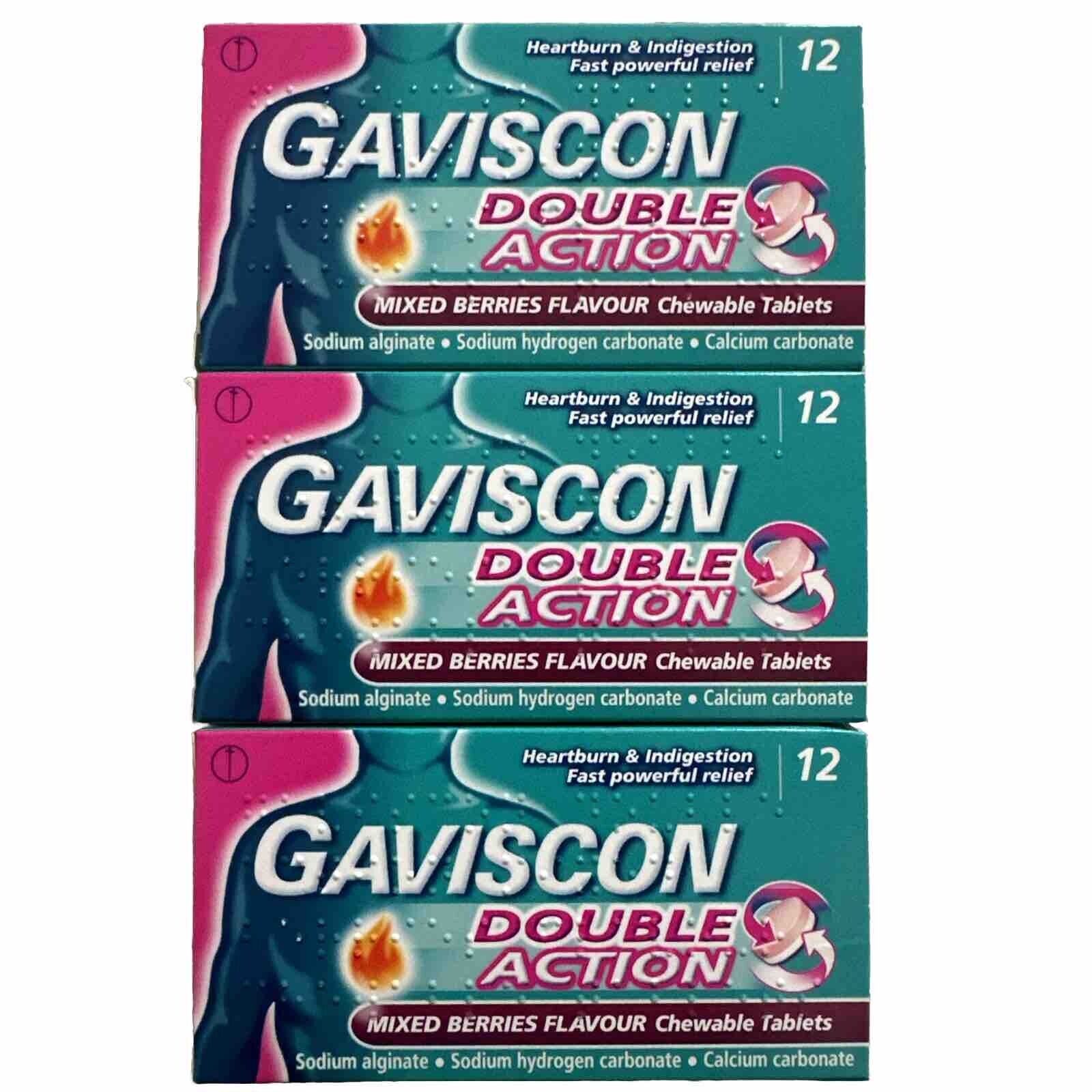 3 x Gaviscon Double Action Mixed Berries Flavour Chewable Tablets - 12Tablets