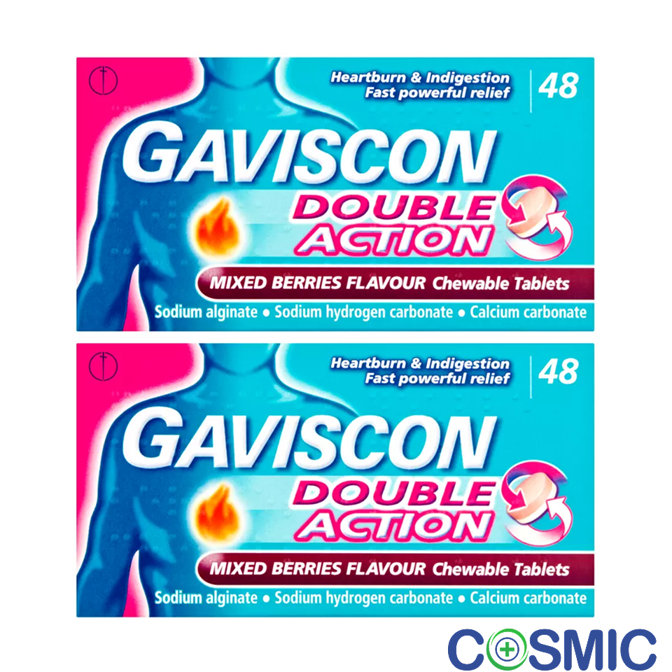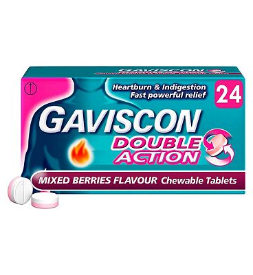 Gaviscon Double Action Tablets Heartburn Indigestion Mixed Berries 48