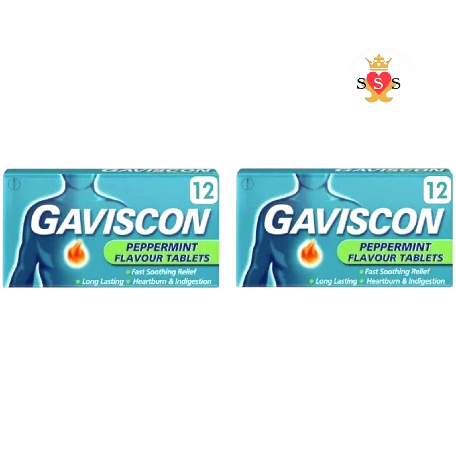 2 x GAVISCON PEPPERMINT TABLETS CHEWABLE TABLETS HEART BURN & INDIGESTION 12 tab